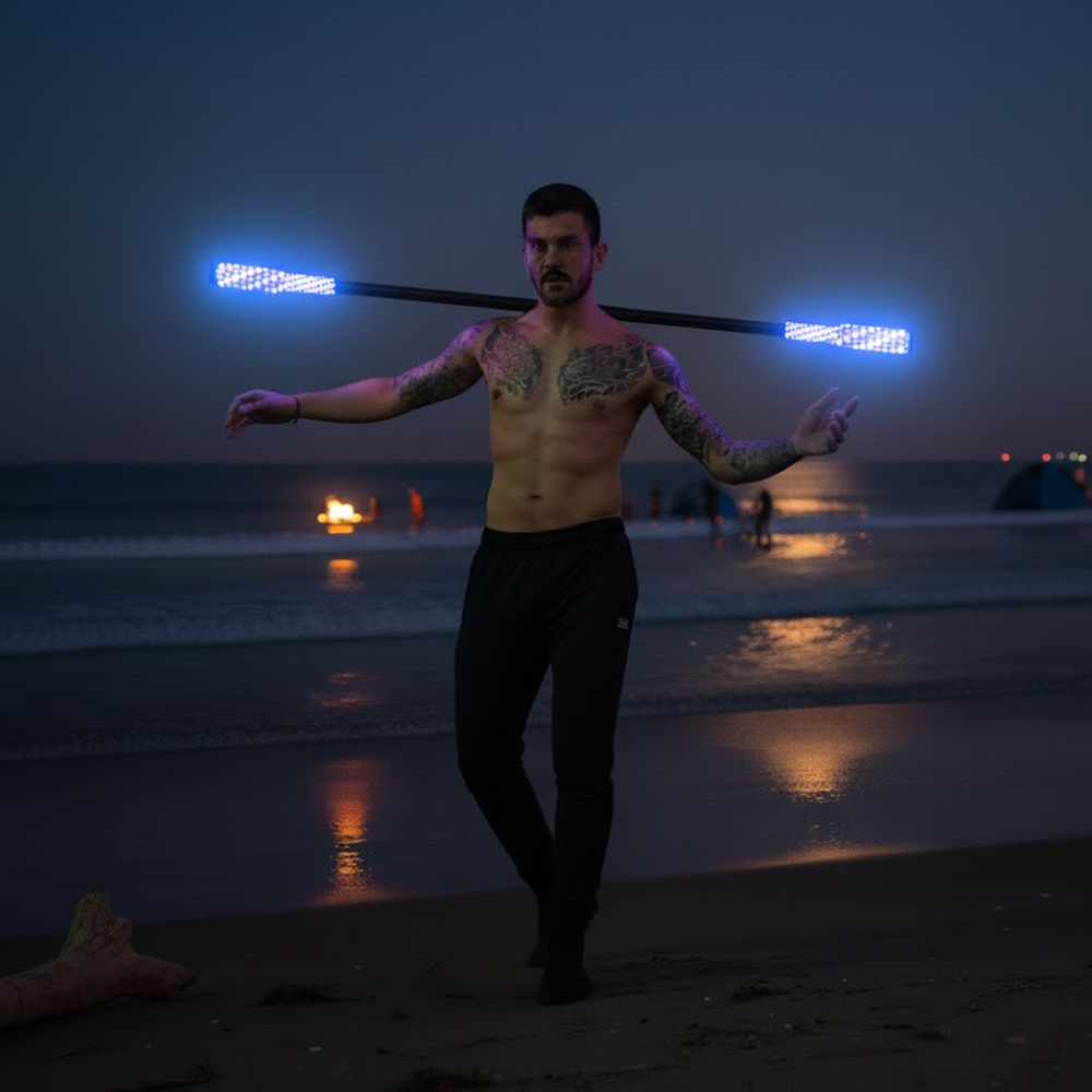 Beginners often start with poi or hoops, as they’re versatile and accessible. The key is to pick a prop that feels natural and safe for practice — you can always explore fire or LED tools later.